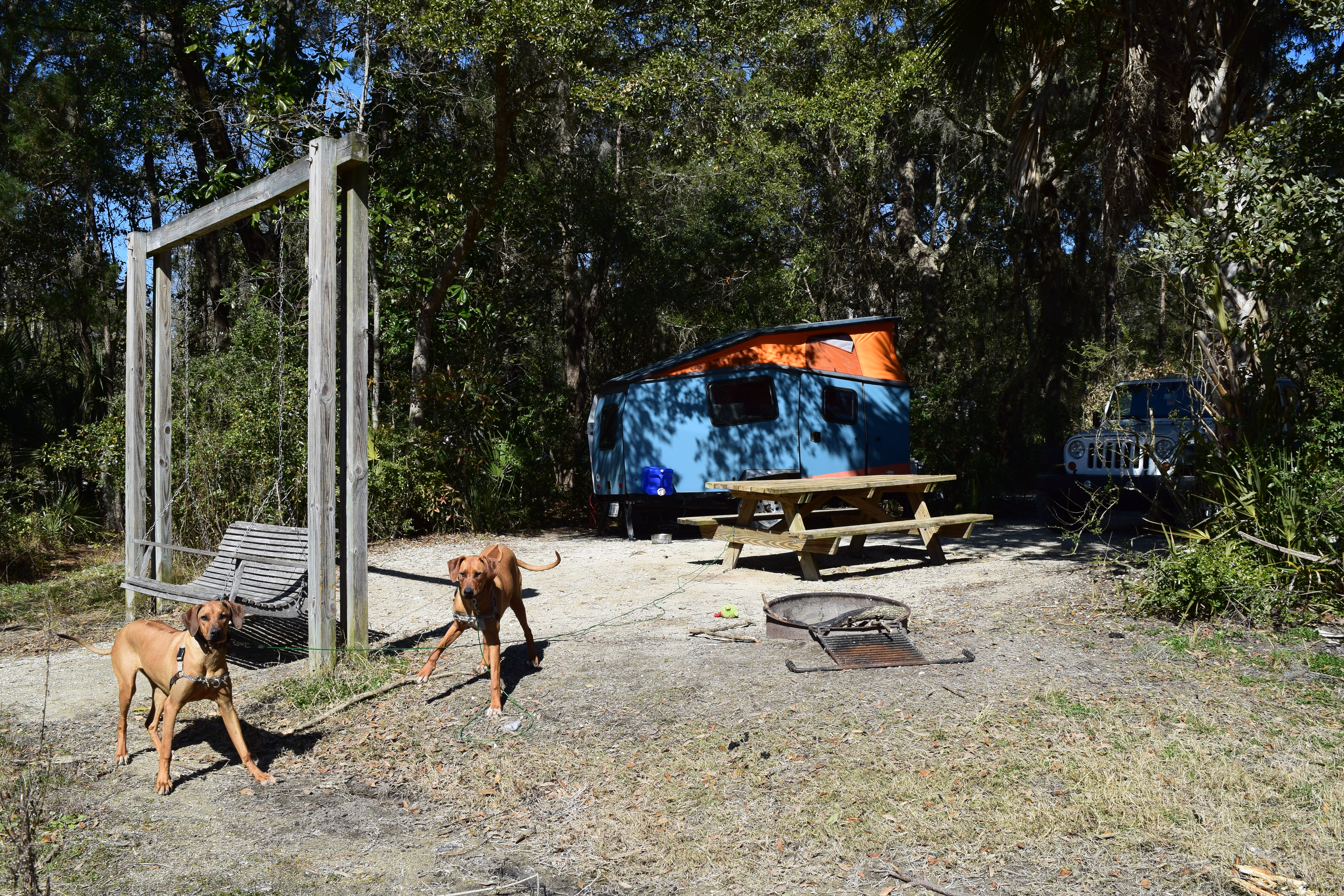 I didn’t care that it was forecasted, and ended up being, in the twenties at night when I was at James Island County Park. I had a propane heater, a new trailer and two enormous (they were each almost 80lbs each by this point) Rhodesians to keep me warm at night. I was busy during the day catching up with people and eateries and still didn’t get to see everyone and do everything I wanted to.
